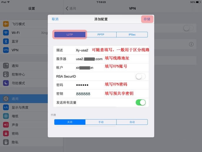 iPhone/iPad VPN设置 L2TP隧道加密连接教程 发表评论A+所属分类:VPN教程 1、iphone和ipad都是用的IOS,依次设置方法相同。首先打开IOS系统的“设置” 2、点击“通用”再点击“加速器” 3、选择"添加加速器设置..." 4、选择L2TP方式,填写必要信息:描述、线路地址、加速器账号及密码,这些内容请在加速器商处获取,预共享密钥设置为(加速器商处获取)。填写完之后,点击“存储”; 5、打开连接按钮 6、设置完成 本站主要进行加速器推荐,小编搜遍全球,精选出国外10大加速器,感兴趣的小伙伴可以前往查看: 国外10大加速器推荐 赞 1 赏 分享